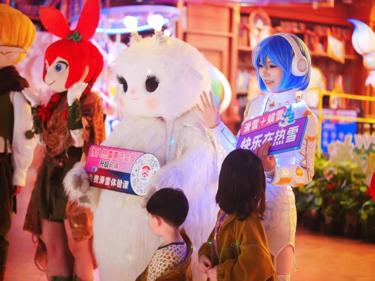 此外,雪场内全新焕新的“冰冻花园”成为游客热门打卡点。更具亮点的是,每日的“雪泡泡巡游”走出雪场,将冰雪欢乐从室内延伸至武商梦时代的公共商圈。